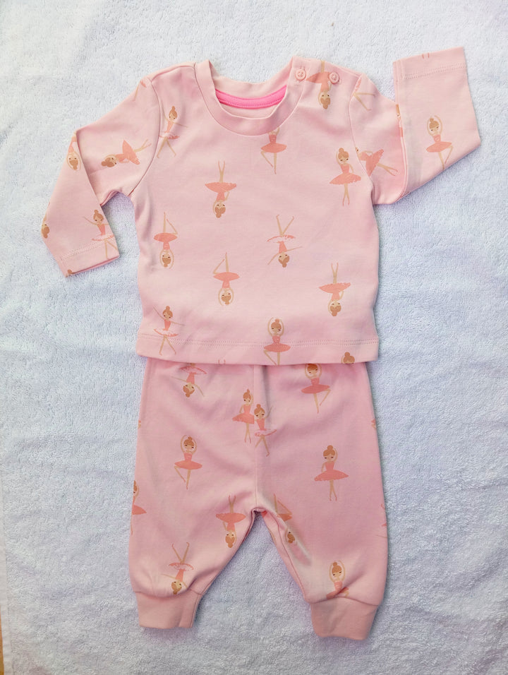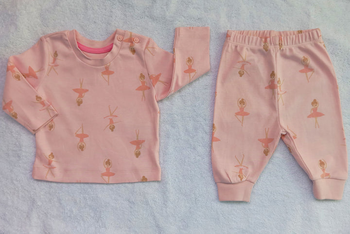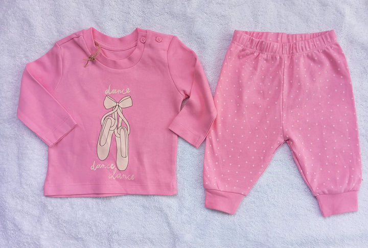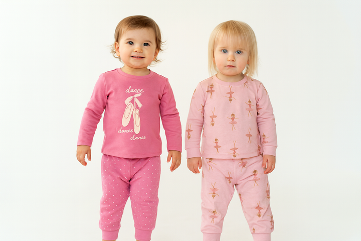 Featuring soft pink tones, dainty ballerina prints, and sweet polka dots, this set is a must-have for tiny ballet lovers. Crafted with love and premium fabric, it ensures a snug and comfy fit—perfect for dreaming of their first recital!
