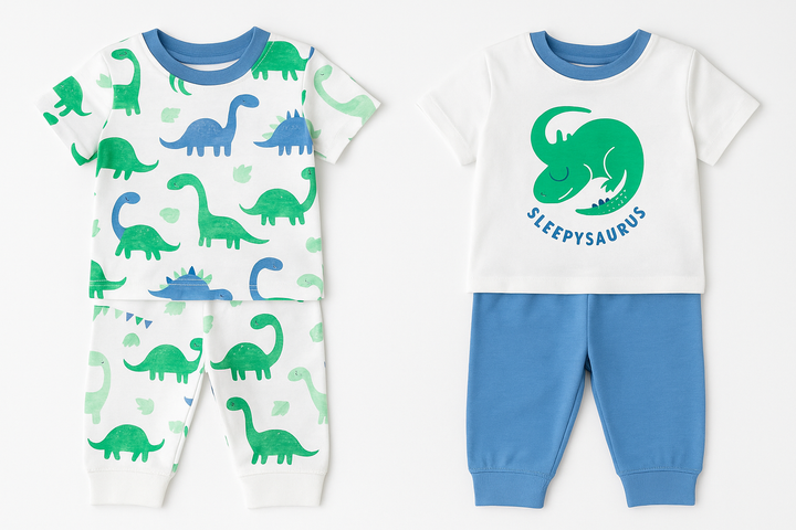 Designs: 2 Variants – All-Over Dinosaur Print & “Sleepysaurus” Graphic