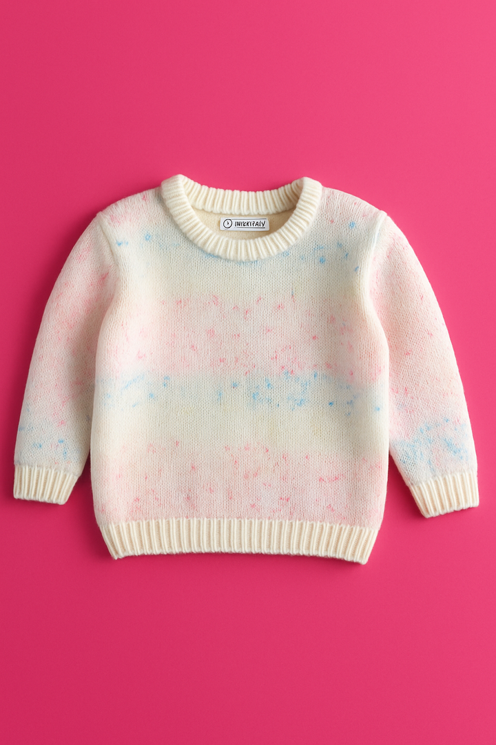 Original Primark Baby Girls Cream Rainbow Speckled Knit Jumper – Soft Winter Sweater