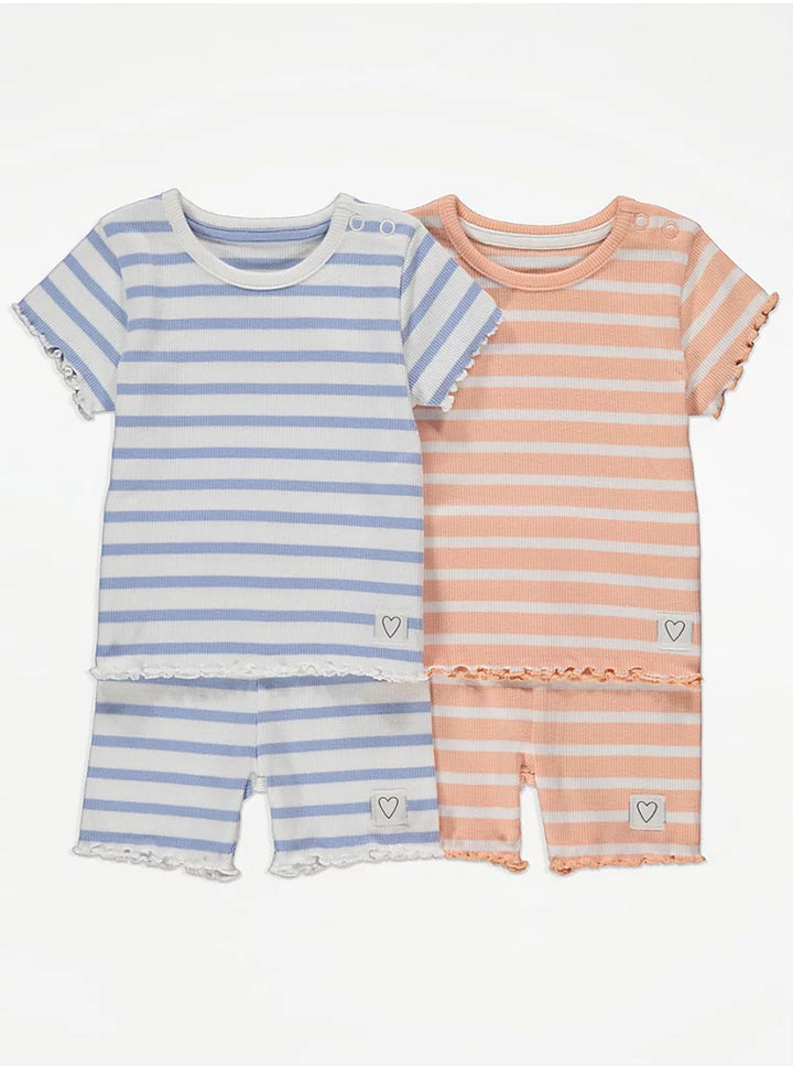George Striped Ribbed Lettuce Trim Top and Shorts Outfit 2 Pack
