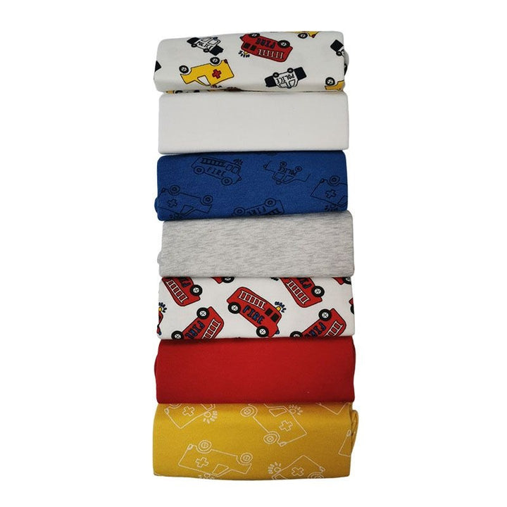 This set features cute prints of fire trucks, ambulances, police cars, and medical symbols, along with solid colours like red, blue, grey, and yellow. The stretchable fabric and smooth seams give your baby full freedom to move while staying cozy and stylish.