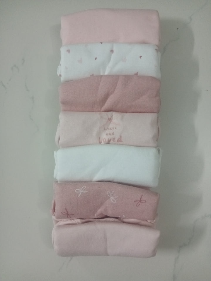 This adorable pack includes a mix of plain pinks, tiny heart prints, bow patterns, and a cute “Little & Loved” design, giving you a perfect blend of style and comfort for everyday wear.
